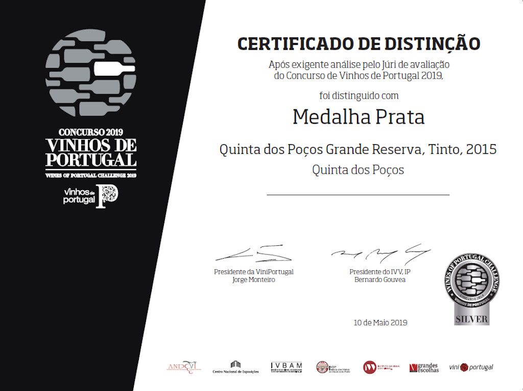 O Quinta dos Poços Grande Reserva 2015 participou no Concurso Vinhos de Portugal, que teve lugar em Santarém, entre 6 e 8 de Maio de 2019, no qual estiveram avaliação cerca de 1400 vinhos, obtendo uma Medalha de Prata.