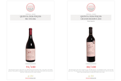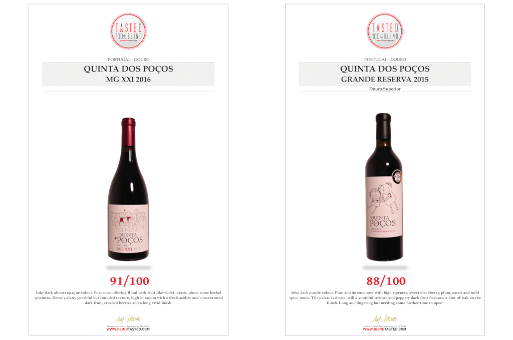 O Quinta dos Poços MG XXI 2016 e o Quinta dos Poços Grande Reserva 2015 obtiveram, respectivamente, as classificações de 91/100 e 88/100.